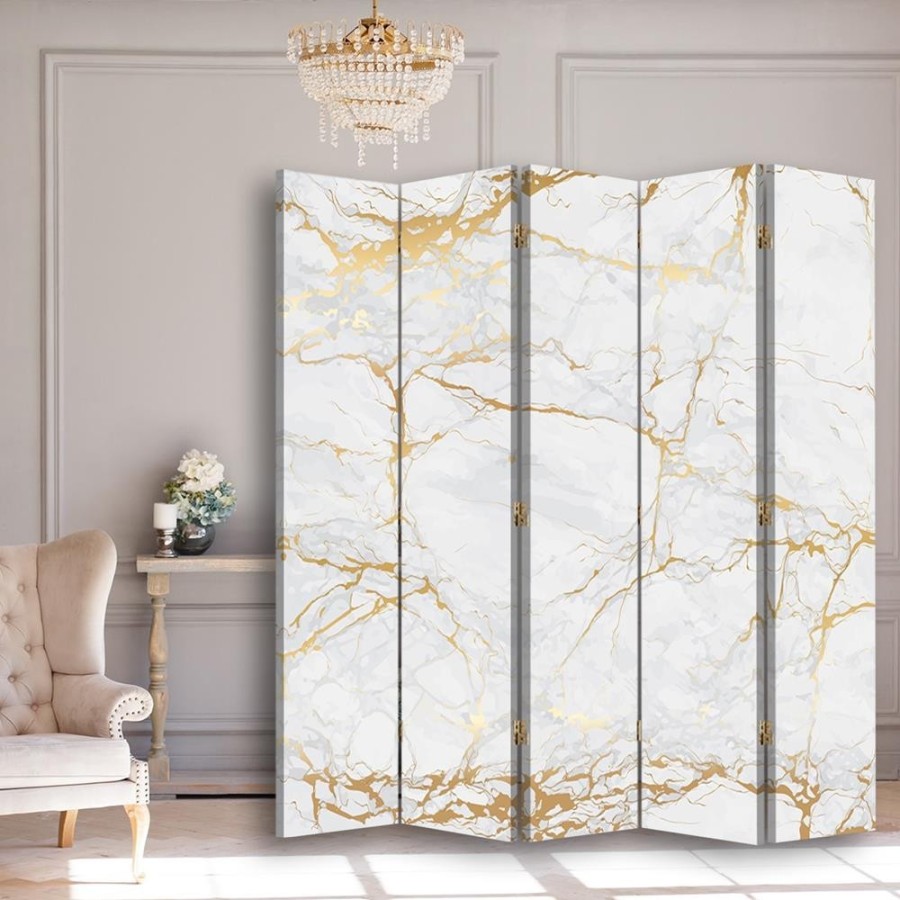 Tela tesa su una cornice solida in MDF/legno. I divisori sono dotati di cerniere in metallo e pratici piedini che proteggono il pavimento dai graffi.
