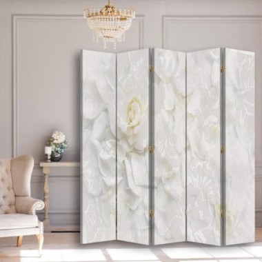 Tela tesa su una cornice solida in MDF/legno. I divisori sono dotati di cerniere in metallo e pratici piedini che proteggono il pavimento dai graffi.