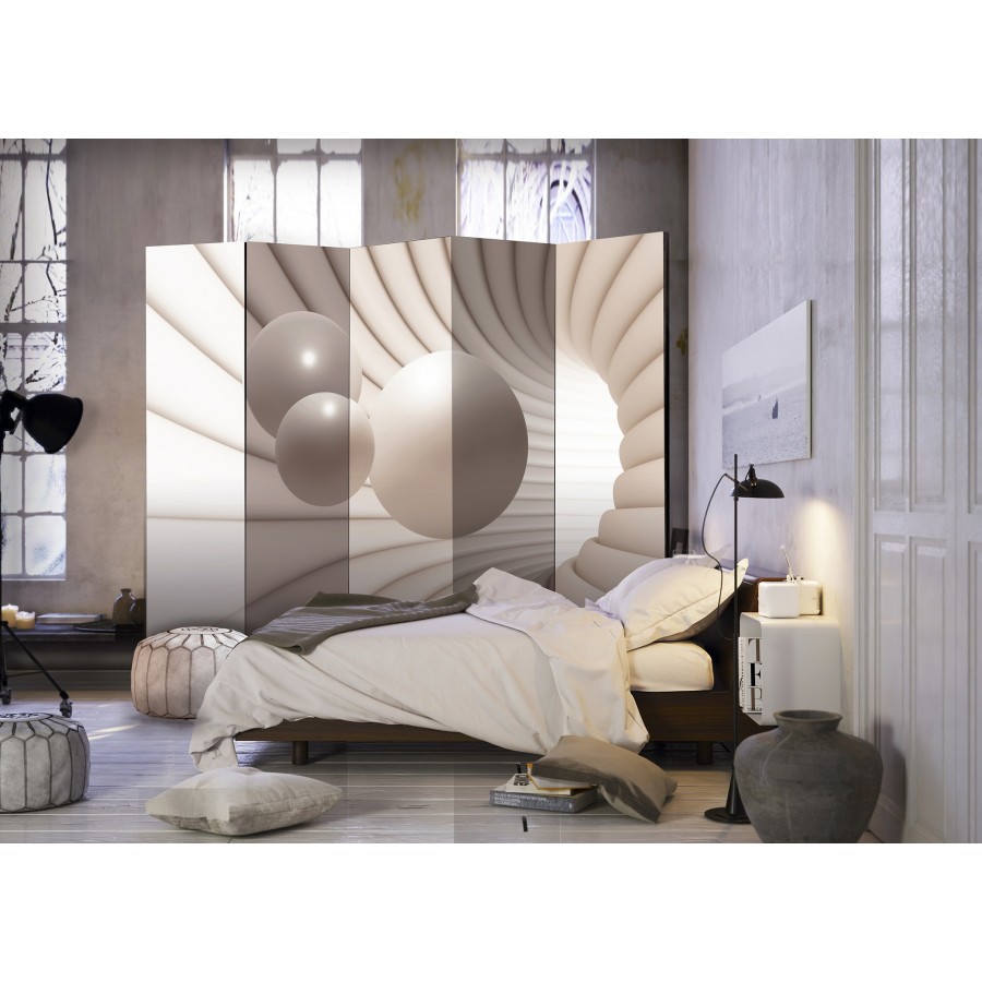 Separè decorativo "Paravento - Balls in the Tunnel II [Room Dividers]" è la decorazione originale per gli interni arredati in stile moderno. Paravento di 5 pannelli fatto del telaio di legno e tela stampata su entrambi i lati non solo può dividere lo spazio ma anche creare un'arrangiamento unico nella stanza. Grazie all'alta qualità del prodotto e della stampa Full HD del disegno originale i separè da interni renderanno ogni stanza affascinante. Paraventi decorativi per interni sono un'idea perfetta per arredare la casa. Vale la pena menzionare le loro funzioni pratiche - separè per interni possono p.es. nascondere lo stendibiancheria. È una decorazione molto originale che si può usare sia negli appartamenti che in locali di servizi come saloni di parrucchiere o di bellezza, studi medici o ristoranti. Separè decorativo è ideale: Come un elemento decorativo o un elemento che divide gli spazi in casa In un monolocale dividendo la zona giorno dalla zona notte In camera da letto dove divide la zona notte dalla guardaroba Nei boutique e saloni di bellezza - sia come un arrangiamento originale che lo spogliatoio! Per dividere lo spazio nella stanza dei bambini In grandi appartamenti e nei loft Dati tecnici Dimensioni delle parti:225x172: 45x172 45x172 45x172 45x172 45x172