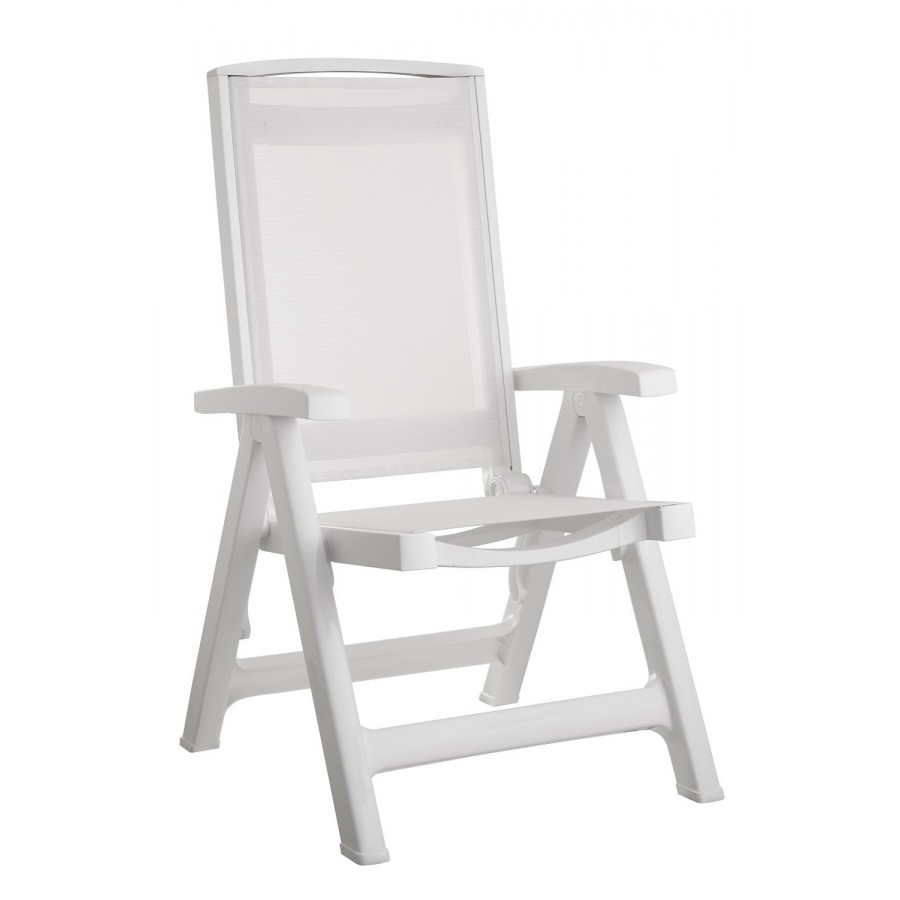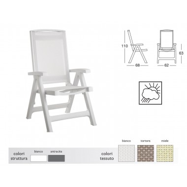 Poltrona pieghevole. Seduta e schienale in tessuto traspirante idrorepellente. Schienale regolabile in 5