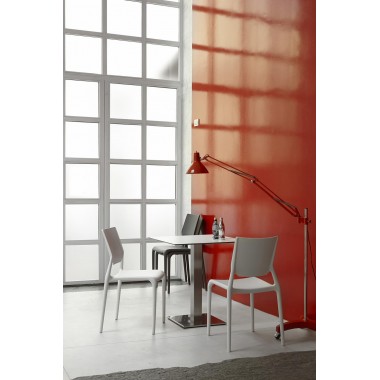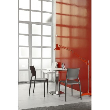 Sirio è confortevole nella seduta e facilmente impilabile,