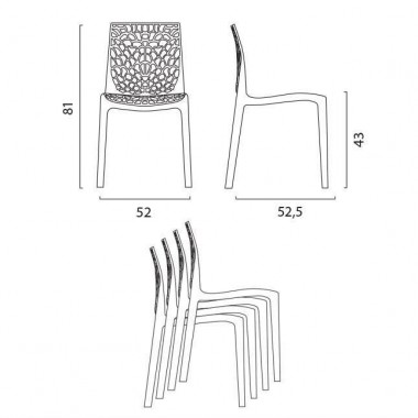Dimensioni pezzo singolo: 81x52x53 cm.