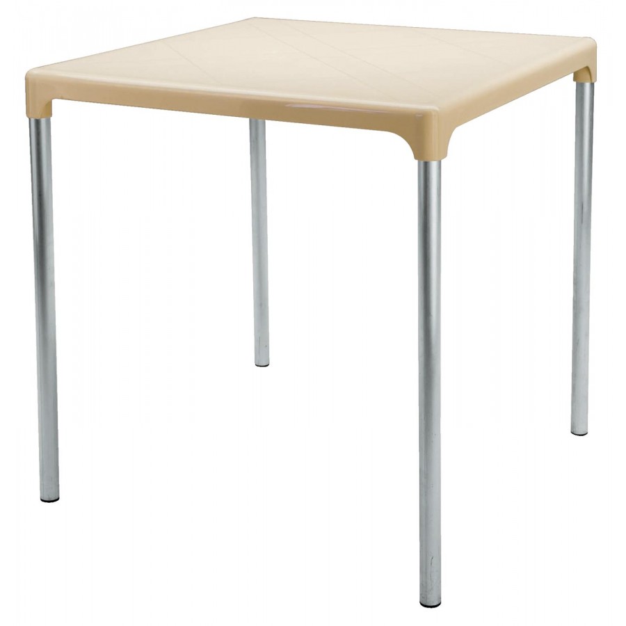 Tavolo quadrato in polipropilene con gambe in alluminio per bar e ristoranti