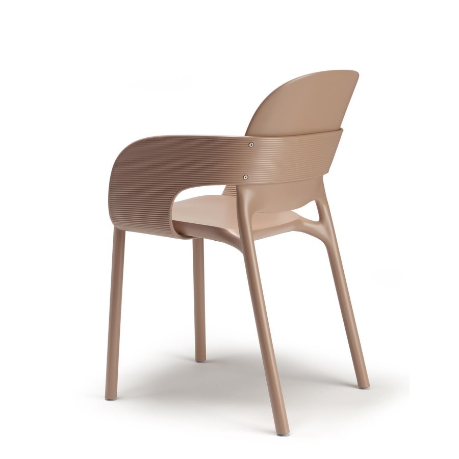 HUG is made with a certified regenerated Post-Consumer Recycled (PCR) material. Chair and armchair reach a